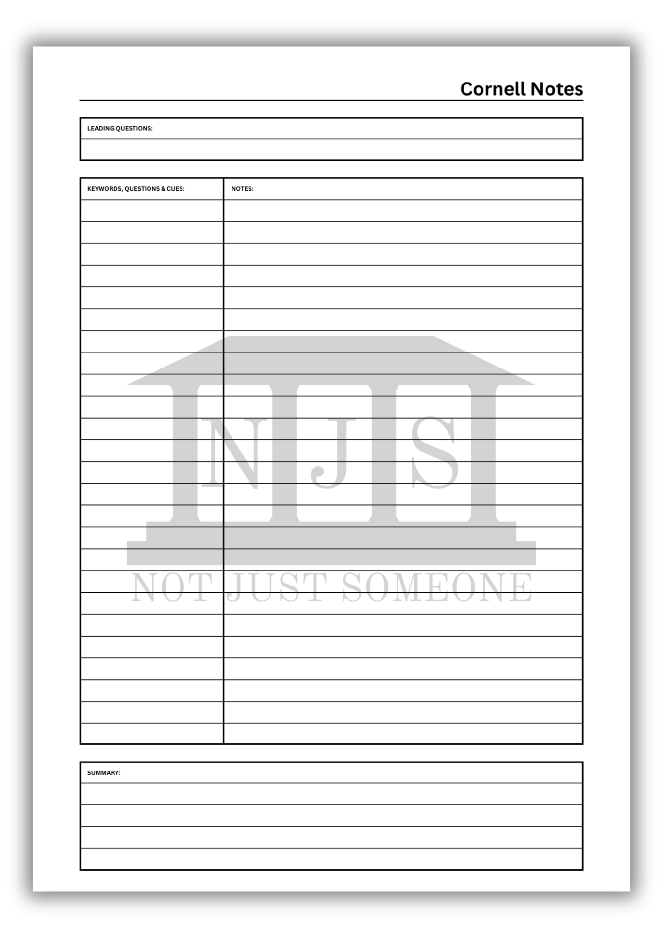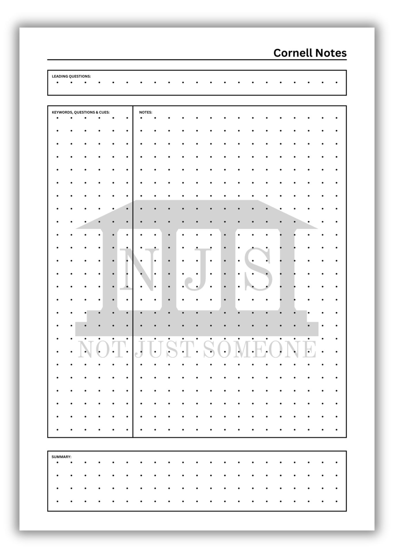 **Content: Assignment Tracker, Bullet Points, Cornell Notetaking Method blank, Cornell Notetaking Method chequered, Cornell Notetaking Method dotted, Cornell Notetaking Method lined, Daily Study Planner, Exam Tracker, Flashcards, Formular Sheet Overview, Mind Map1, Mind Map2, Notes blank, Notes chequered, Notes dotted, Notes lined, Pomodoro Tracker, Retrospective Revision Timetable, Study Schedule, Table 3 Columns, Table 4 Columns, Table 5 Columns, To Be Read, Vocabulary Sheet, Weekly Study Planner